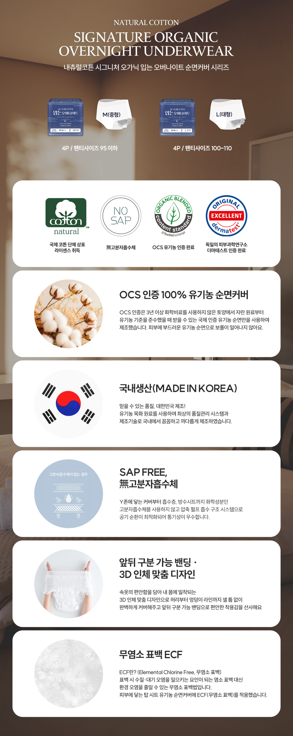 개별포장 국내생산 100% 유기농 순면커버 입는 오버나이트
