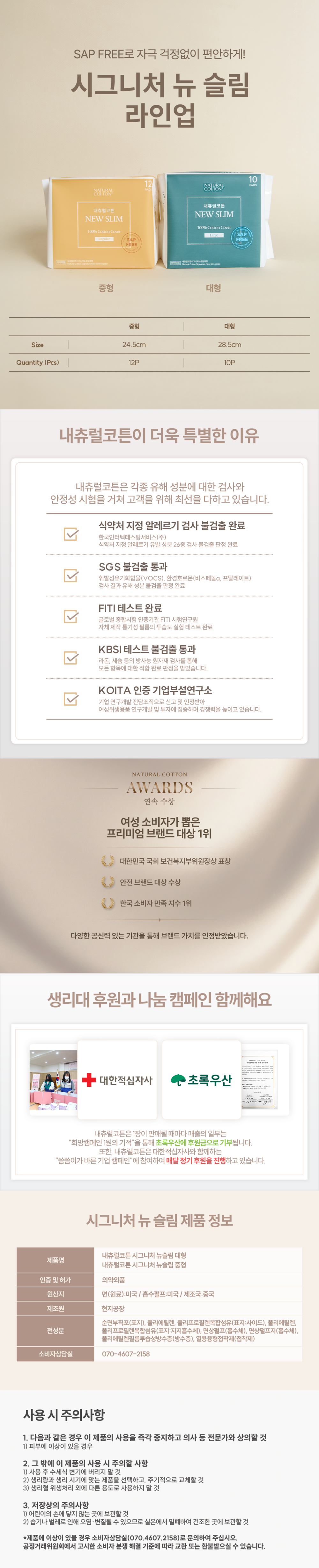 내츄럴코튼 뉴슬림 생리대 ✨20팩 세트