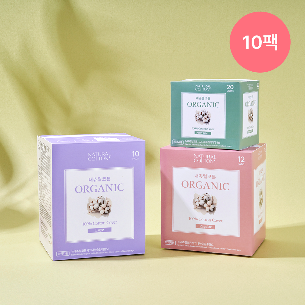 내츄럴코튼 시그니처 오가닉 생리대,팬티라이너 10팩 세트
