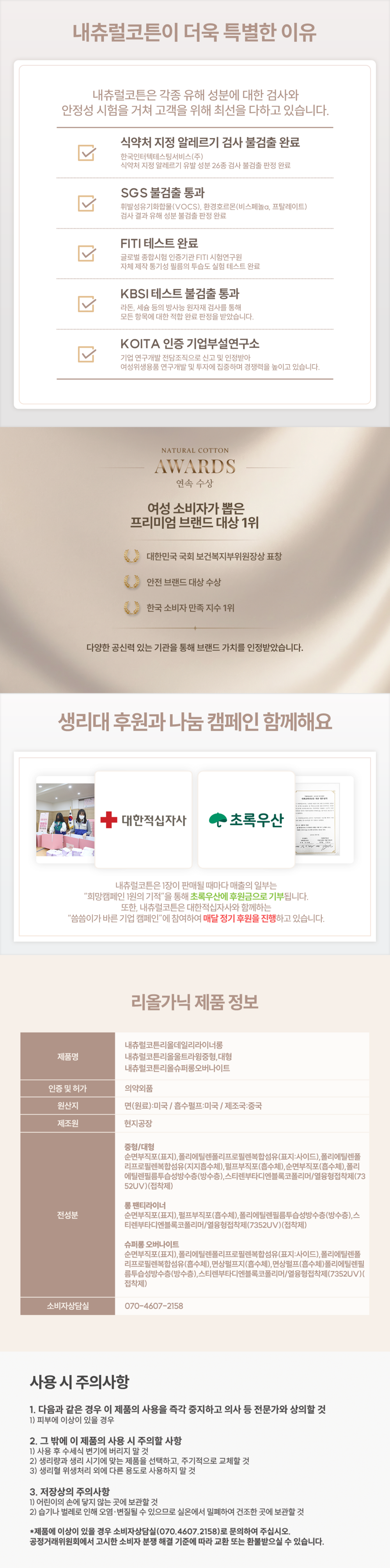 내츄럴코튼 리올가닉 생리대,팬티라이너 10팩 세트