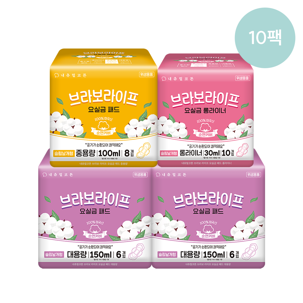 브라보라이프 순면커버 요실금 패드 중·대용량/롱 라이너 10팩 세트