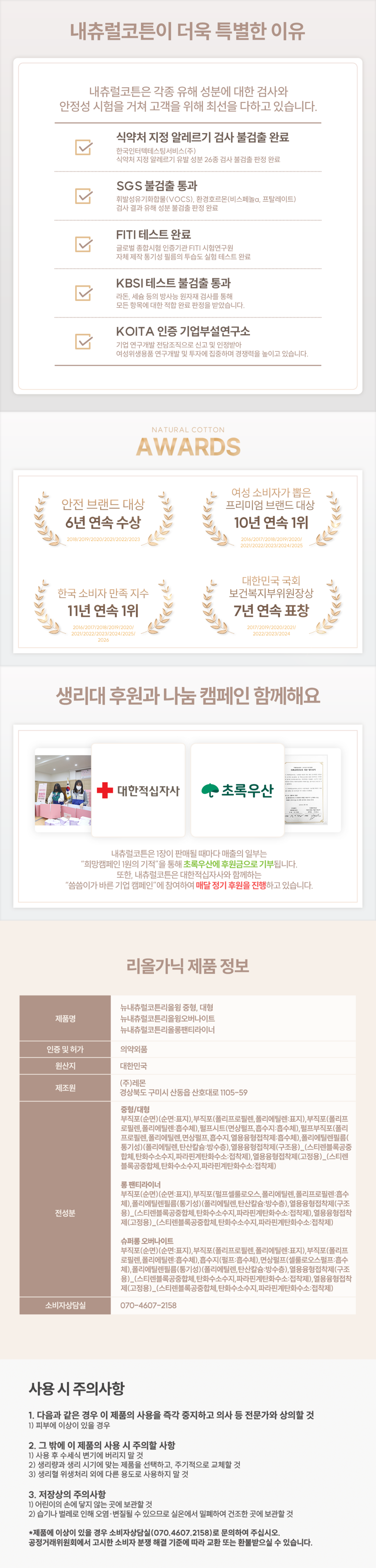 내츄럴코튼 오리지널 리올가닉 유기농 순면커버 생리대 중형 14P
