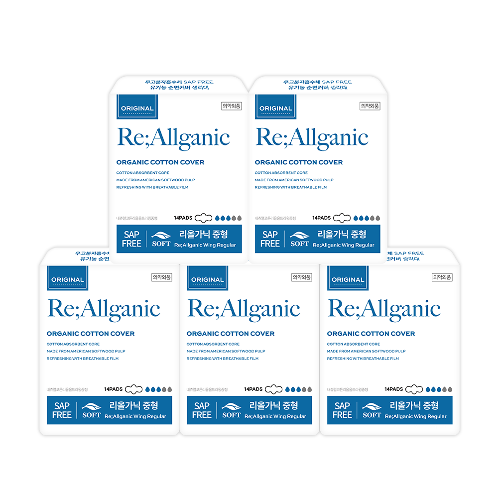 내츄럴코튼 오리지널 리올가닉 유기농 순면커버 생리대 중형 14P 5팩