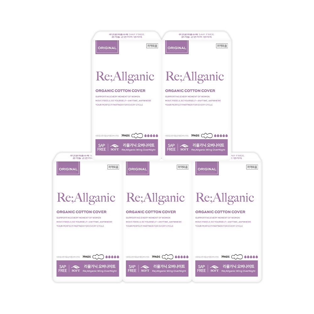 내츄럴코튼 오리지널 리올가닉 유기농 순면커버 생리대 오버나이트 7P 5팩