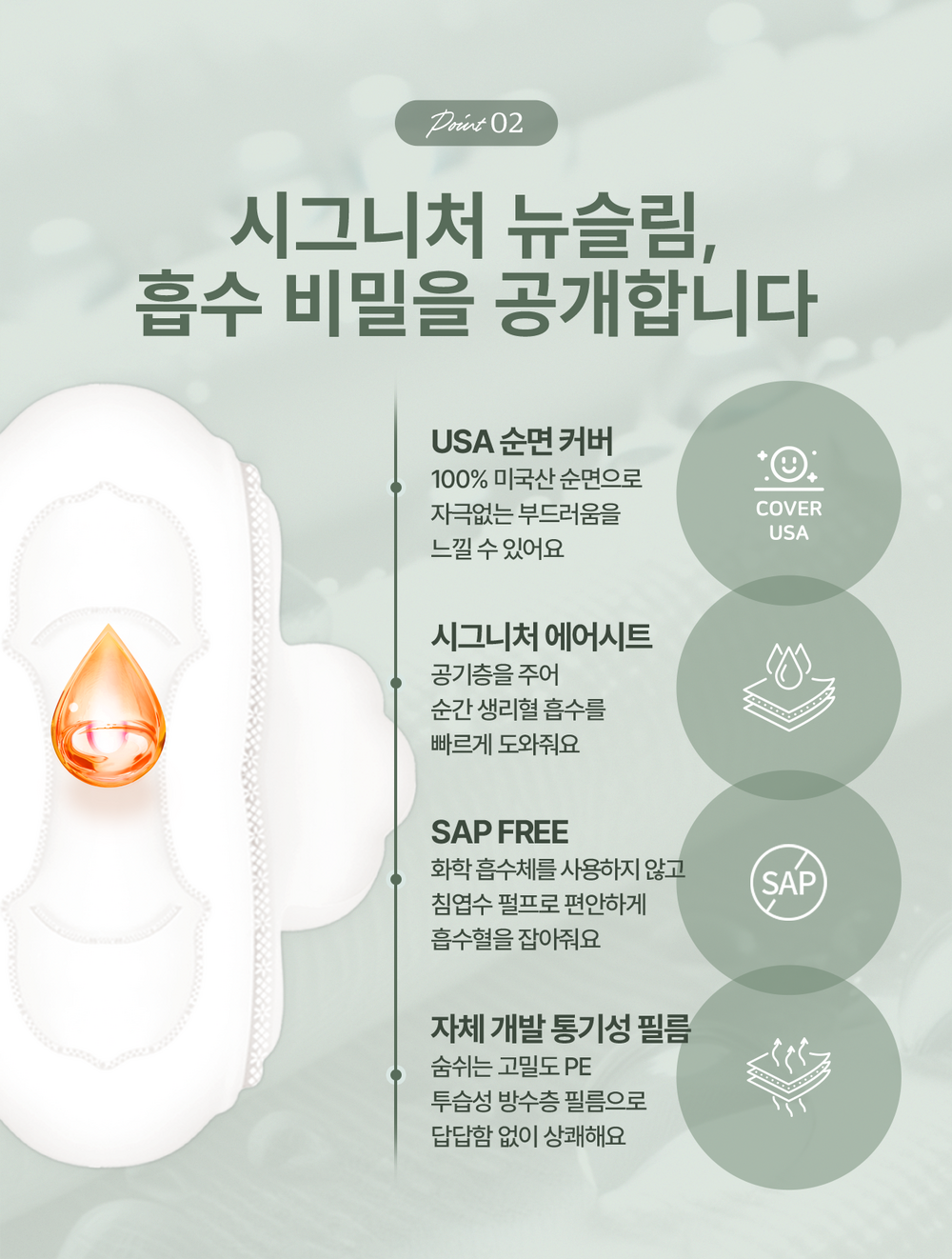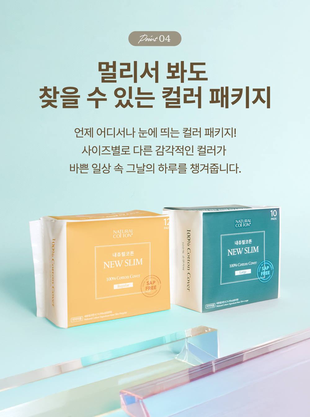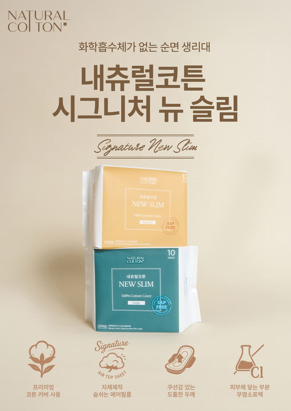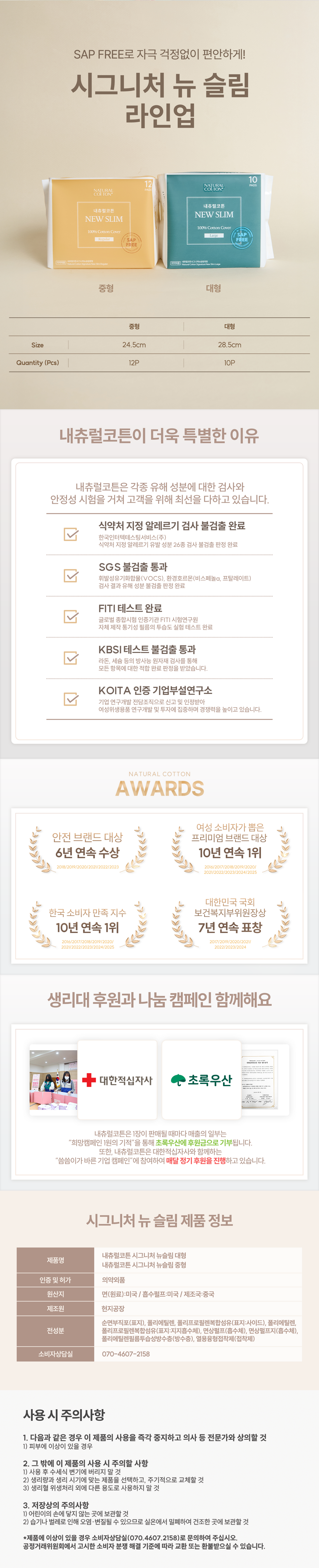 내츄럴코튼 NO SAP 뉴슬림 순면커버 생리대 대형 10P