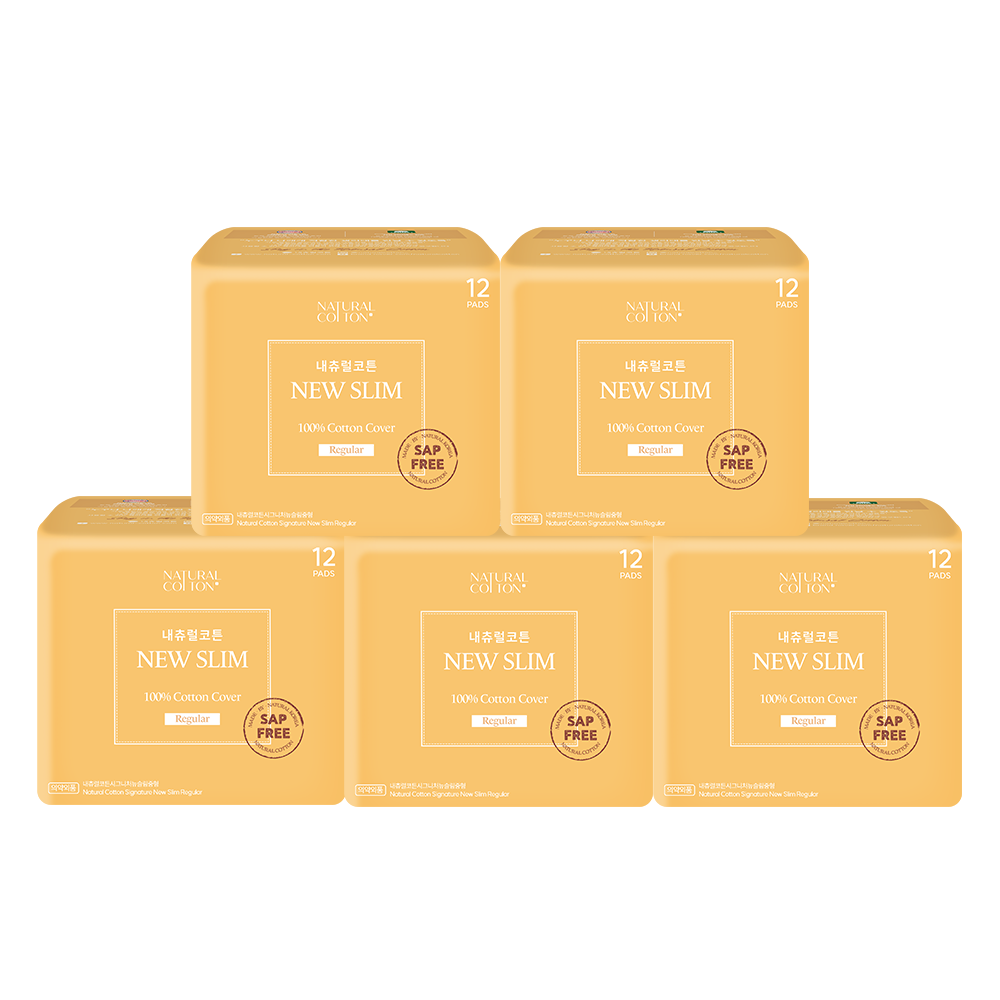 내츄럴코튼 NO SAP 뉴슬림 순면커버 생리대 중형 12P 5팩
