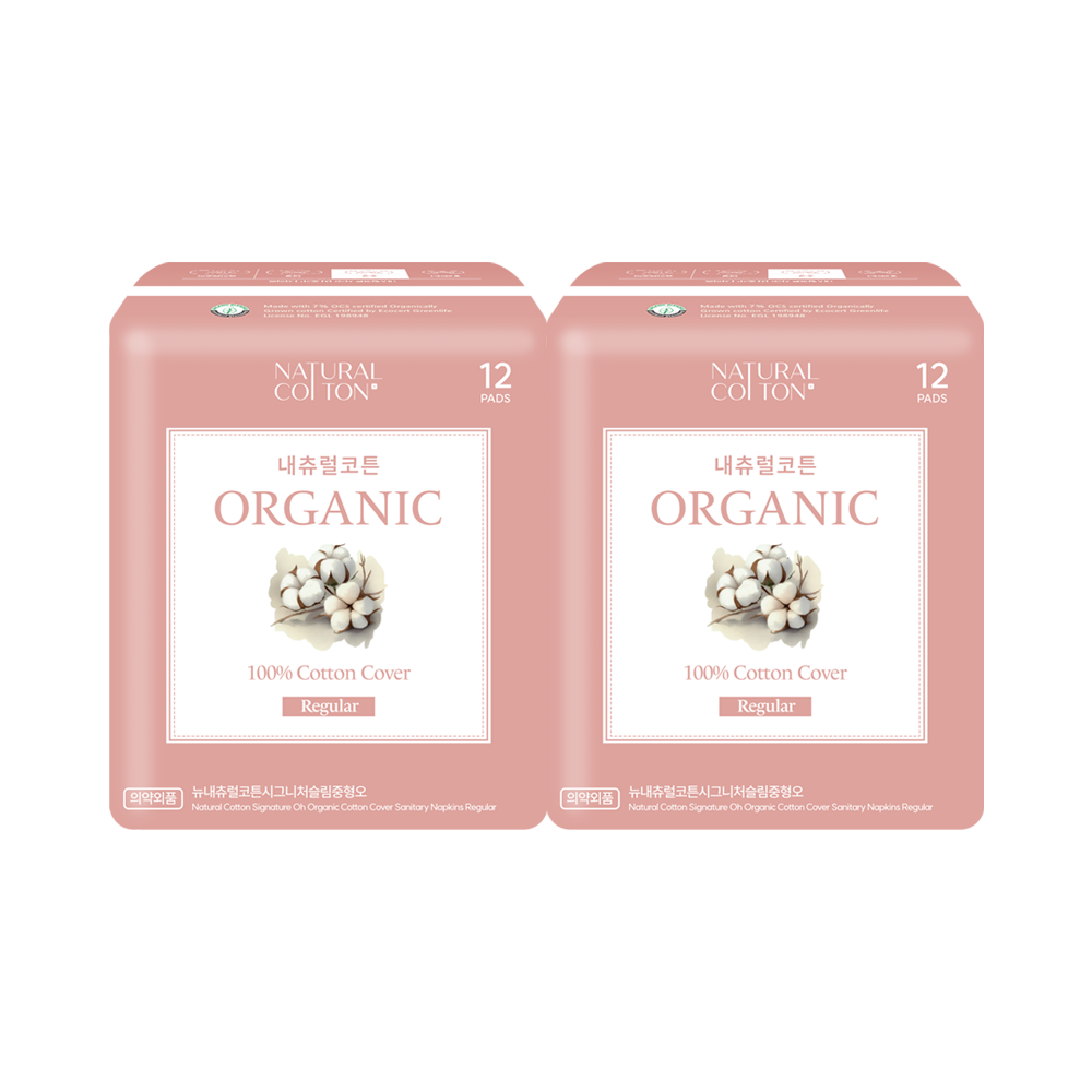 내츄럴코튼 오가닉 유기농 순면커버 생리대 중형 12P 2팩