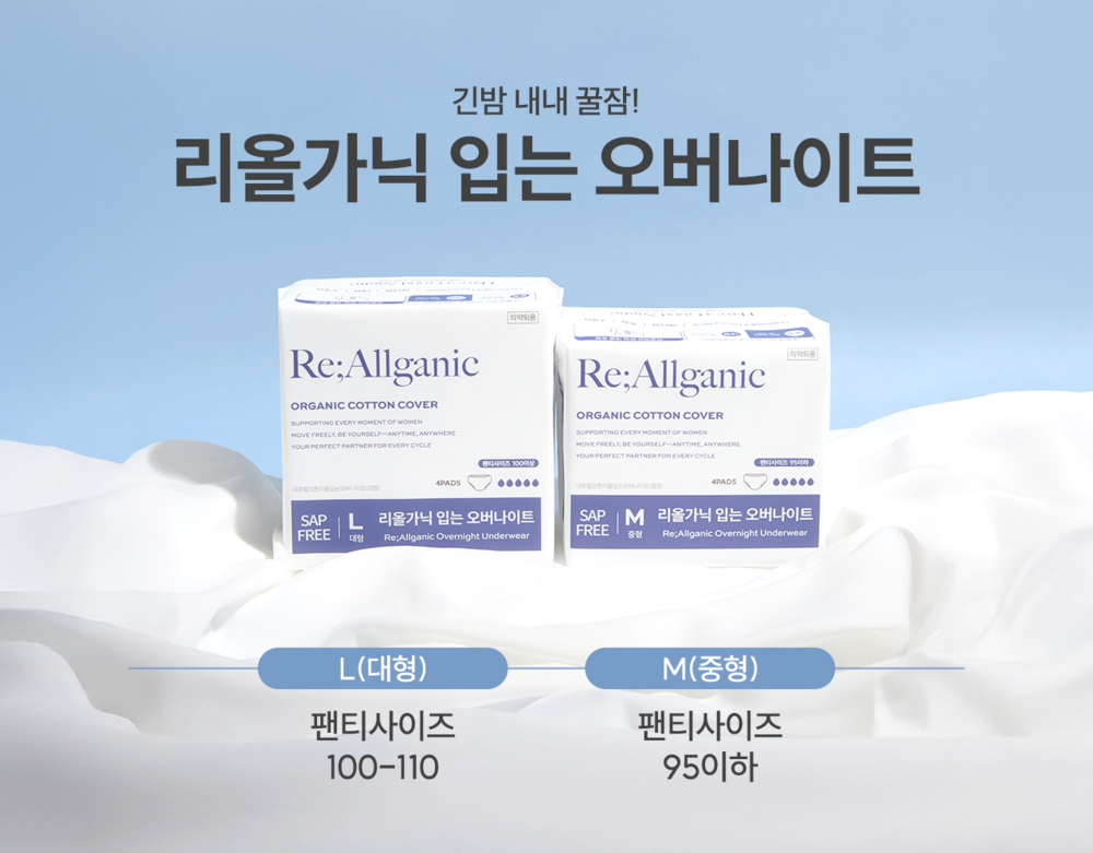 내츄럴코튼 리올가닉 유기농 순면커버 입는 오버나이트 팬티형 생리대 L(대형) 4P