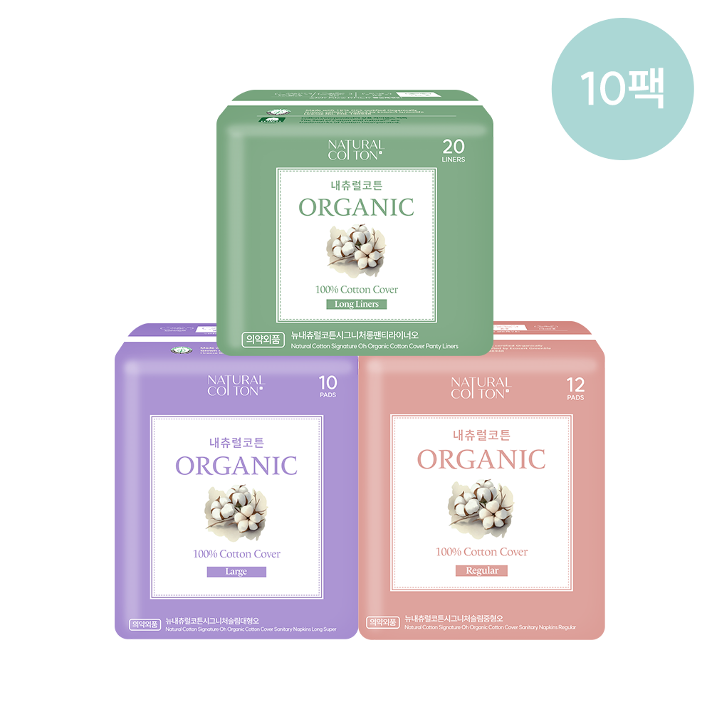 내츄럴코튼 유기농 순면커버 오가닉 생리대 팬티라이너 10팩 세트
