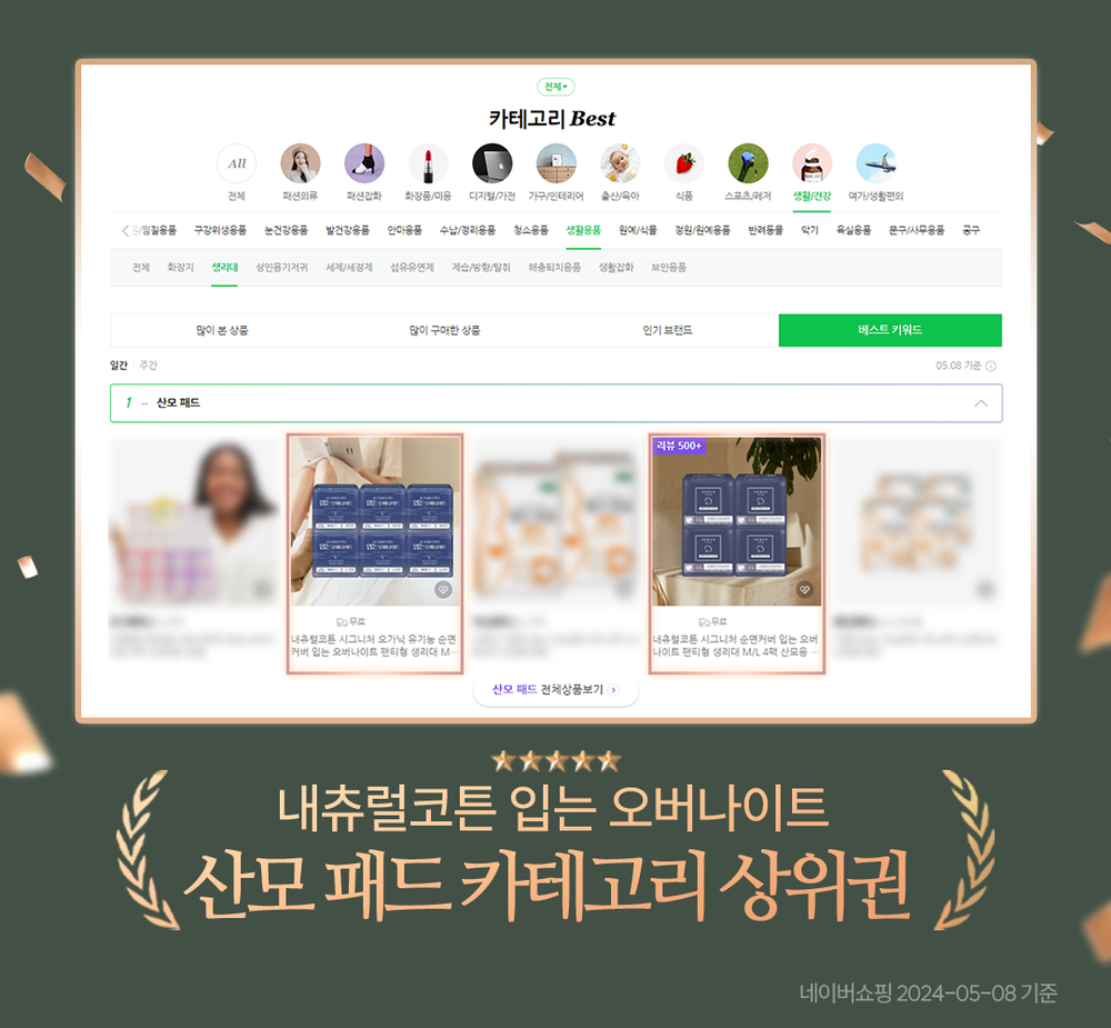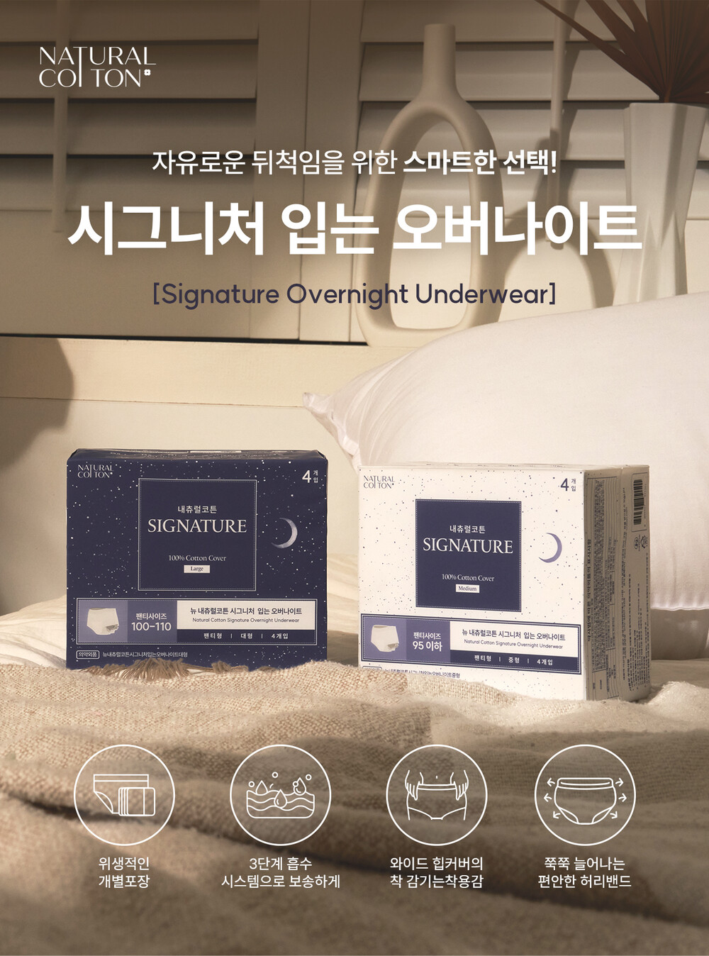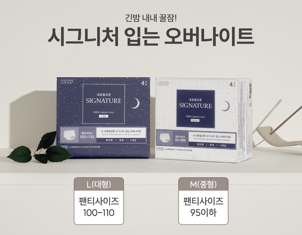 내츄럴코튼 시그니처 순면커버 입는 오버나이트 팬티형 생리대 M/L 4P 3팩
