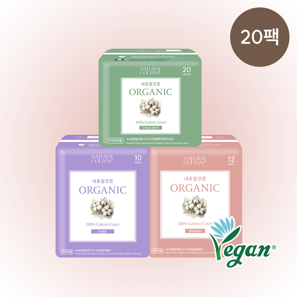 내츄럴코튼 유기농 순면커버 오가닉 생리대 팬티라이너 20팩 세트