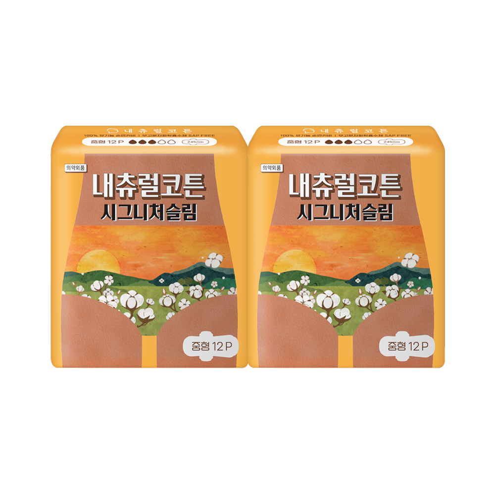 내츄럴코튼 유기농 슬림 순면커버 생리대 중형 12P 2팩