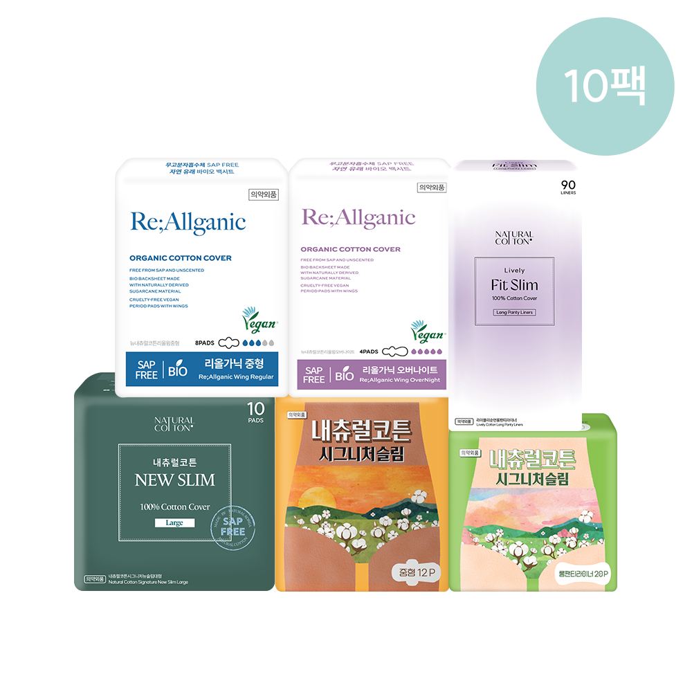 내츄럴코튼 뉴슬림/핏슬림/리올가닉 생리대 팬티라이너 10팩 세트