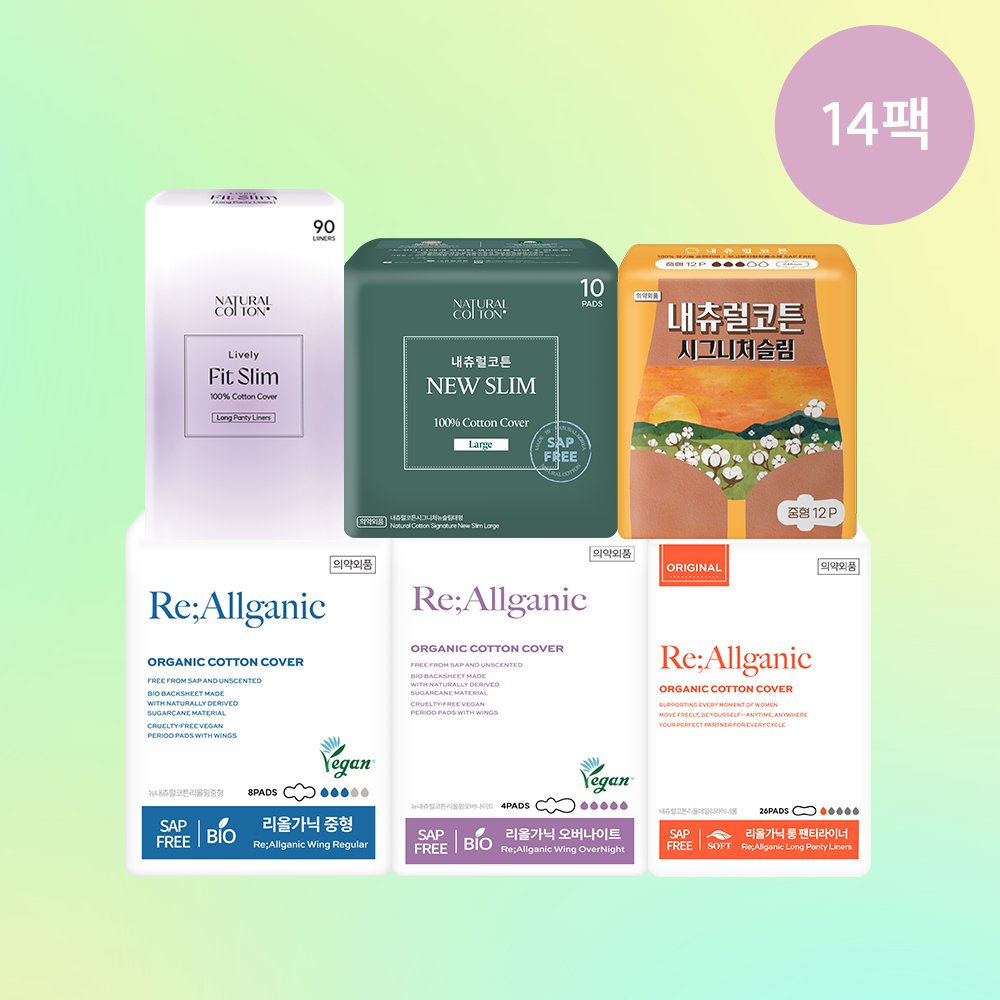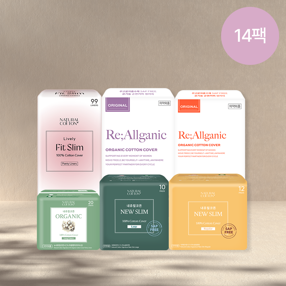 내츄럴코튼 뉴슬림/핏슬림/리올가닉 생리대 팬티라이너 14팩 세트