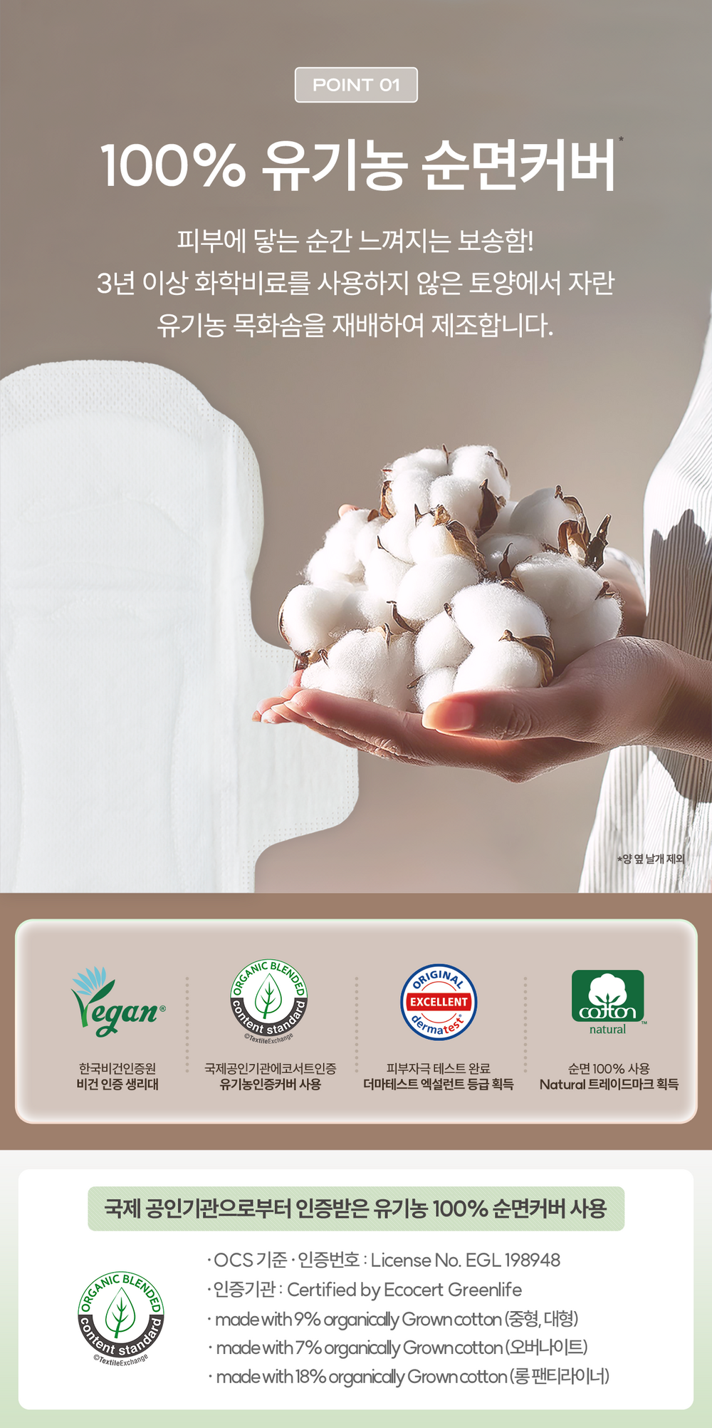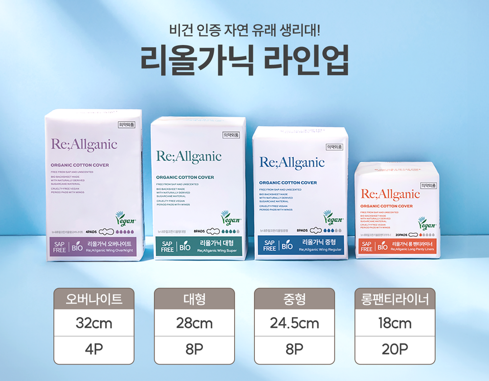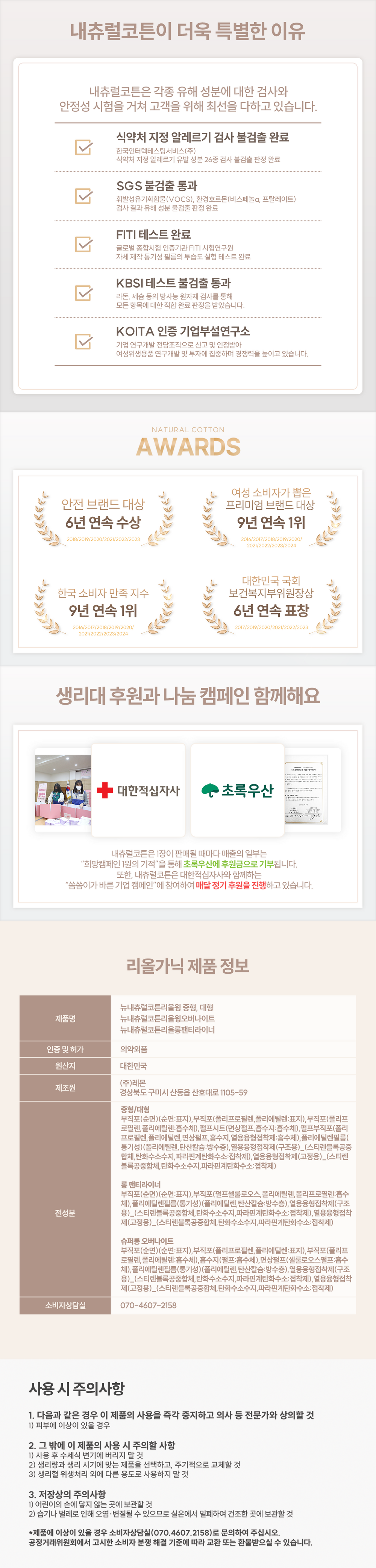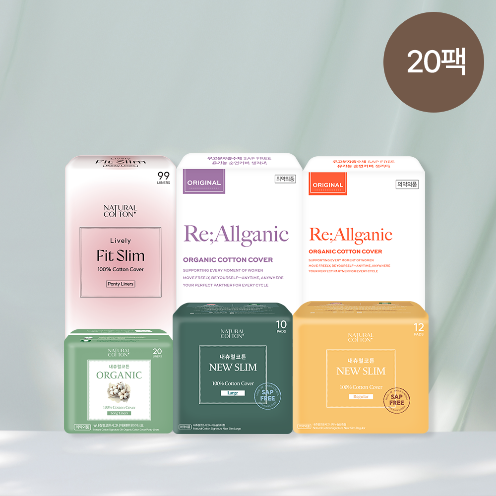 내츄럴코튼 뉴슬림/핏슬림/리올가닉 생리대 팬티라이너 20팩 세트